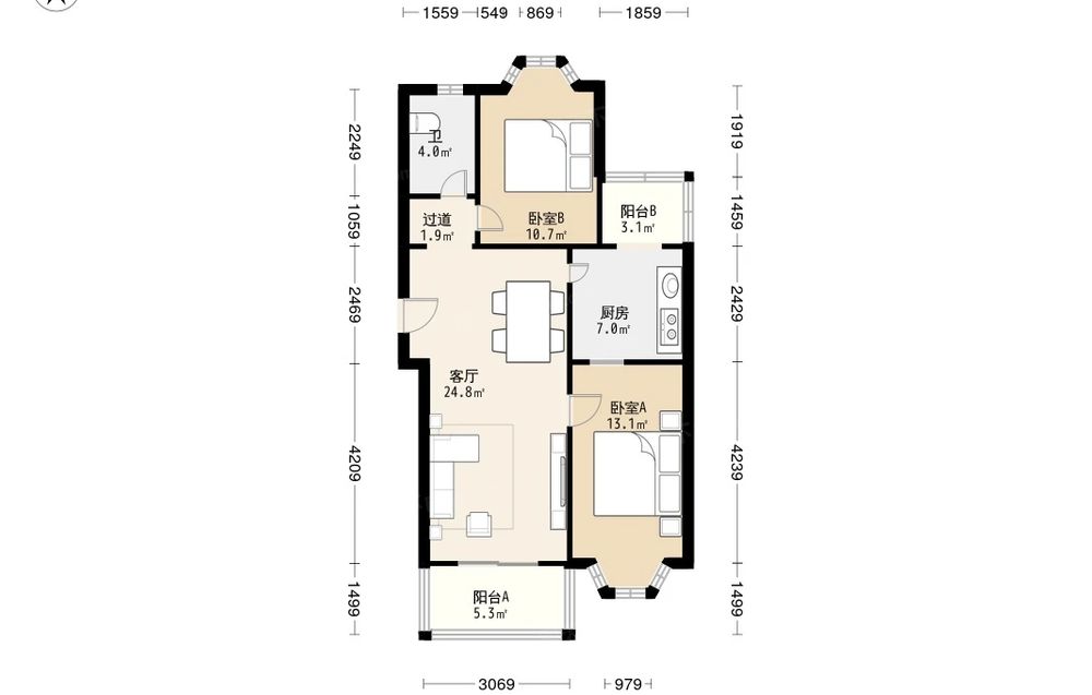 房屋结构 2室 1厅 1卫