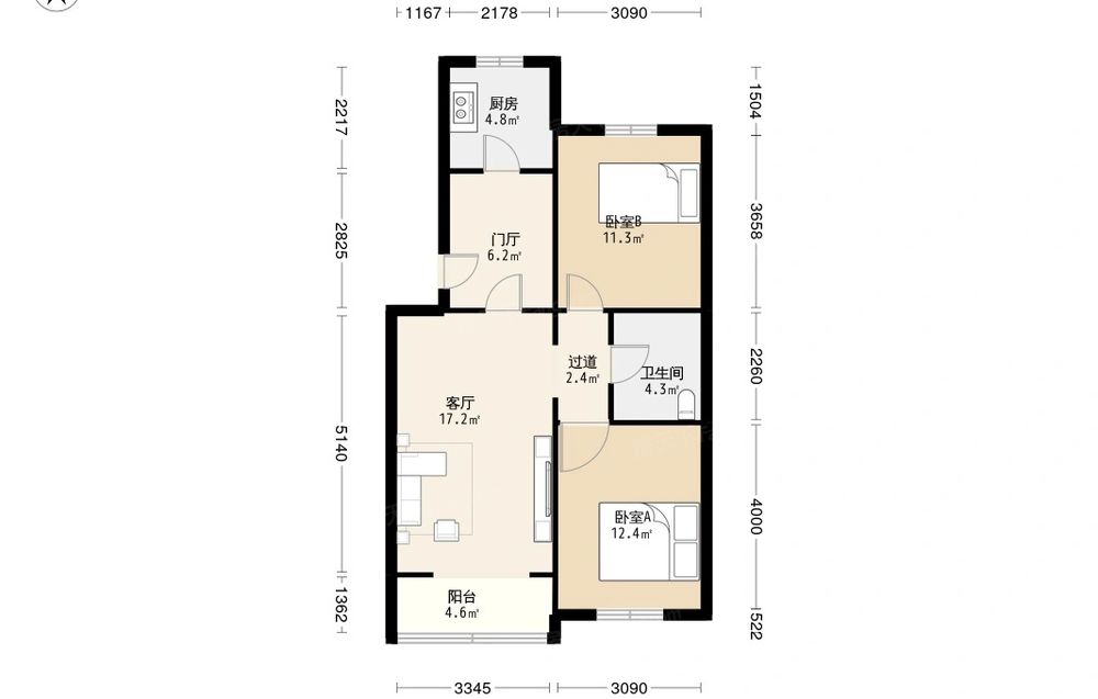 • 当前房源报价为:223.00万