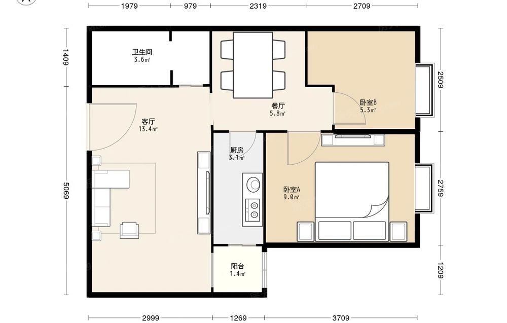 2室2厅1卫
