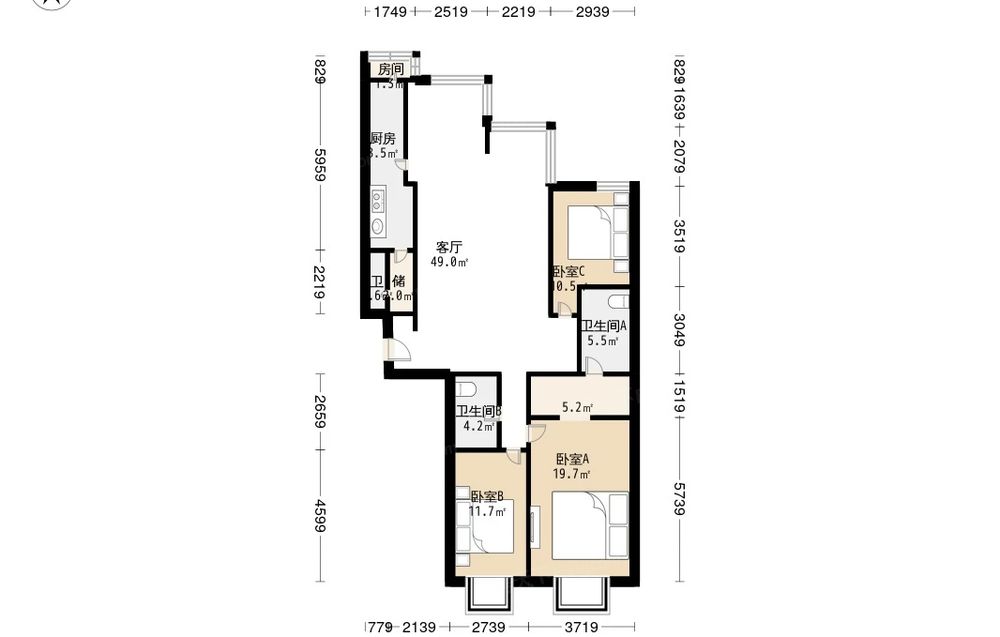 房屋结构 3室 2厅 3卫