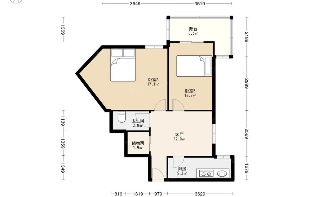 房屋结构 2室 1厅 1卫