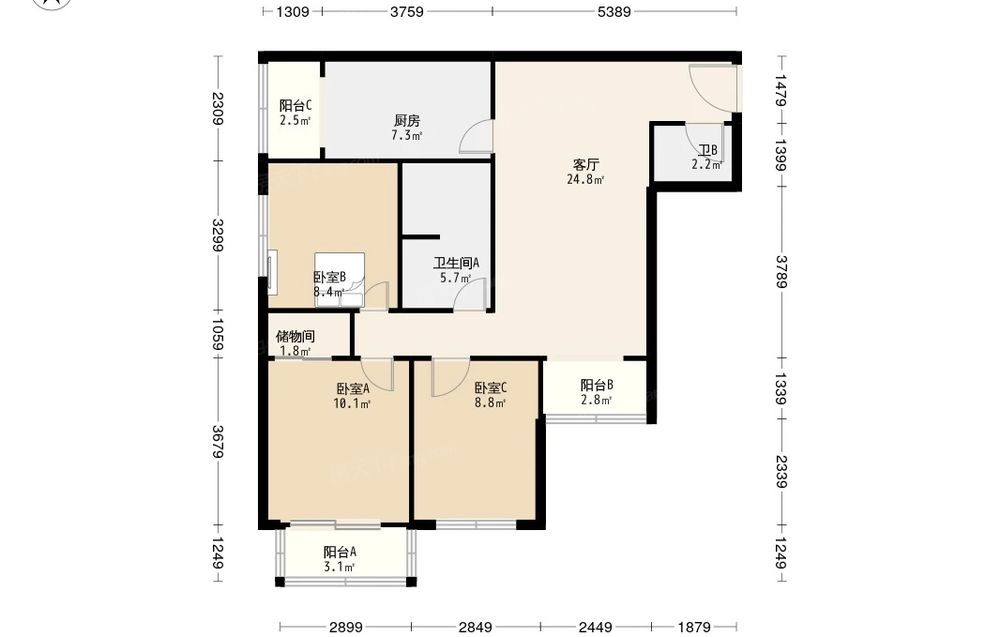 房屋结构 3室 1厅 2卫