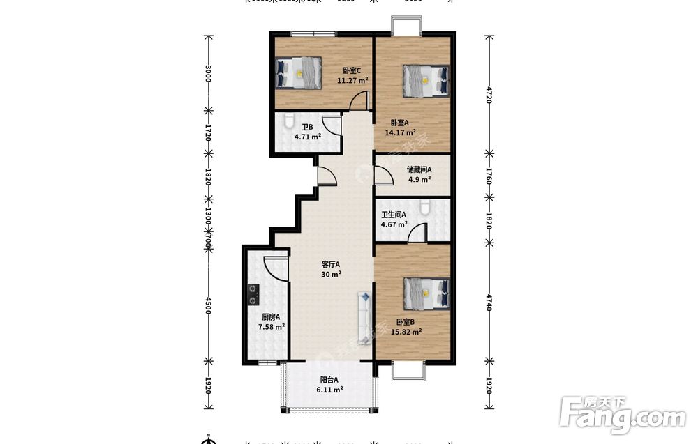 3室1厅2卫