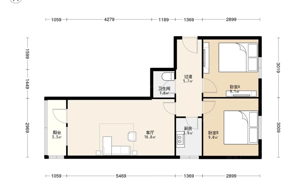 城子二斜井 2室2厅 南 北