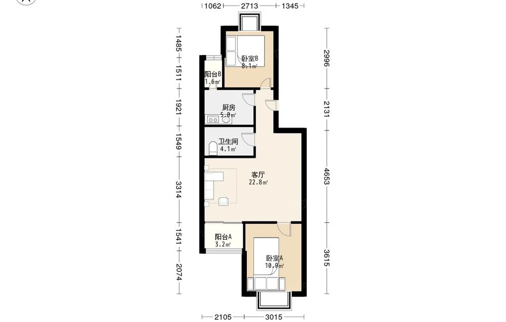 城子西七棵树90号院 2室1厅 南 北