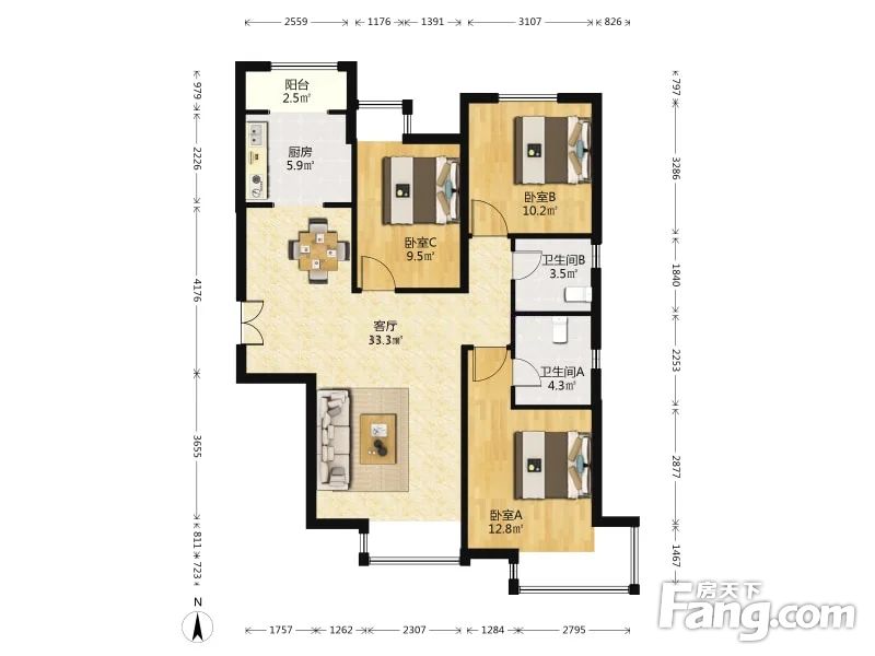 房屋结构 3室 2厅 2卫
