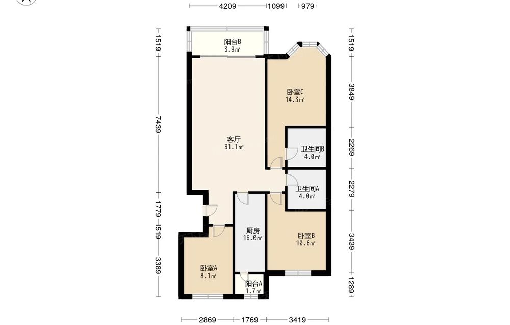 加州水郡三期 2室2厅 南 北