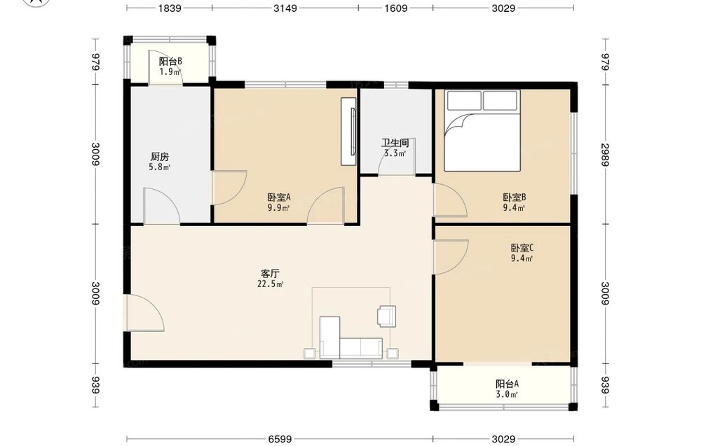 房屋结构 3室 1厅 1卫