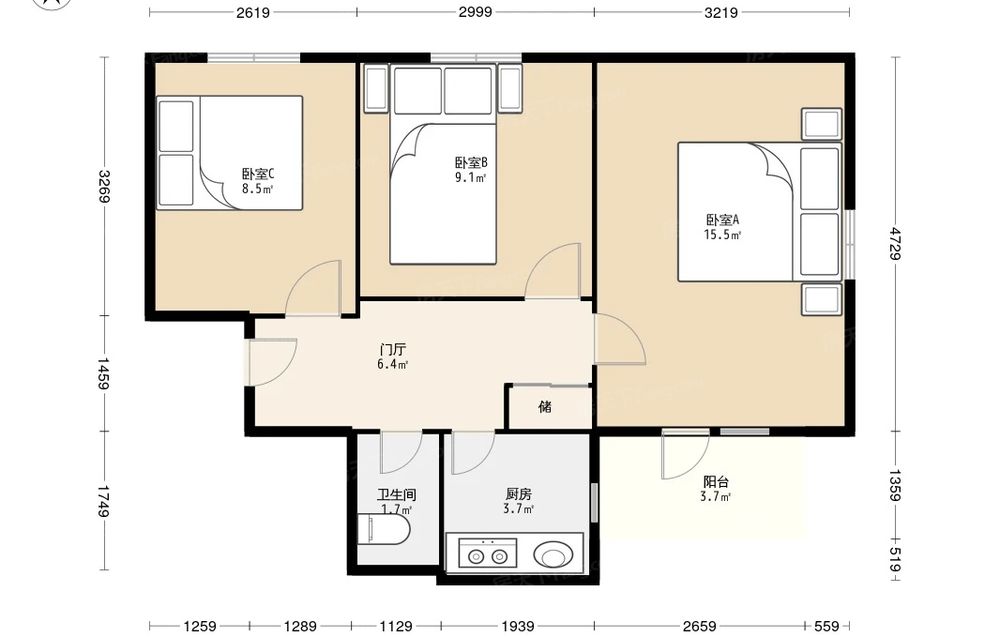 房屋结构 3室 1厅 1卫