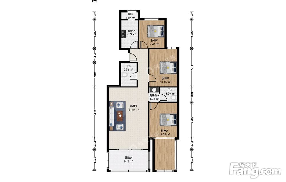 3室1厅2卫