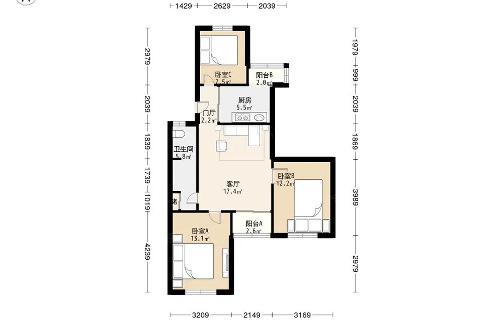 3室2厅1卫