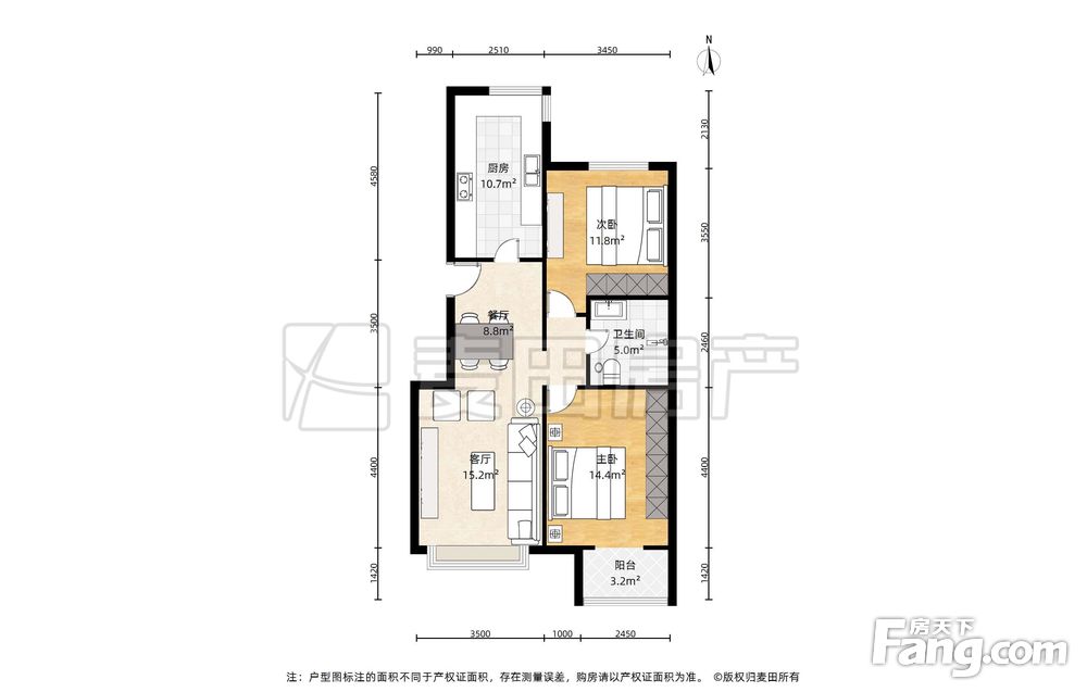 房屋年代∶2014,面积∶87.5平方米,朝向∶南北