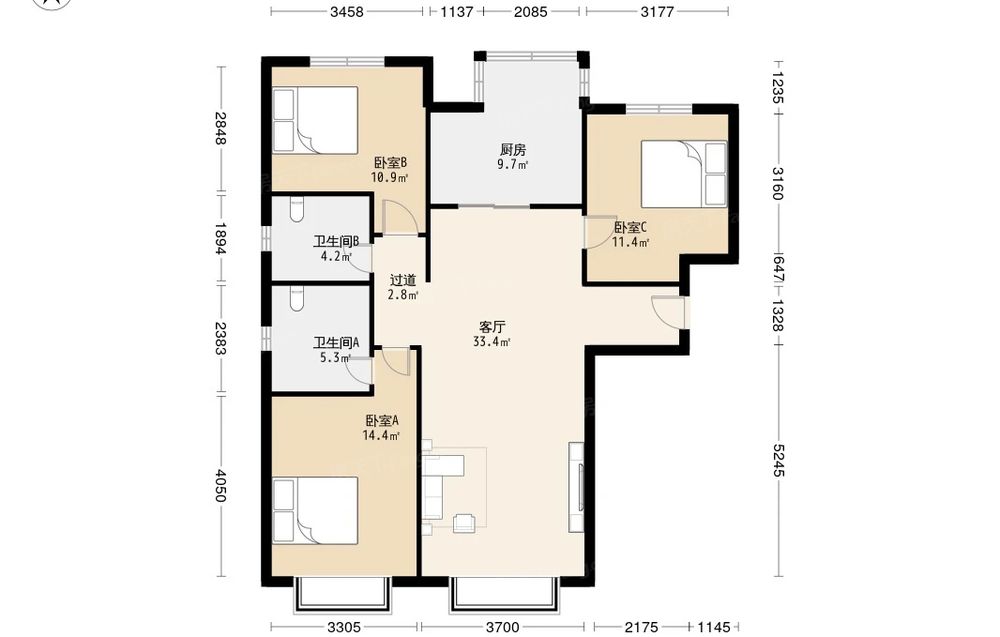 龙山御景 3室1厅 南 北