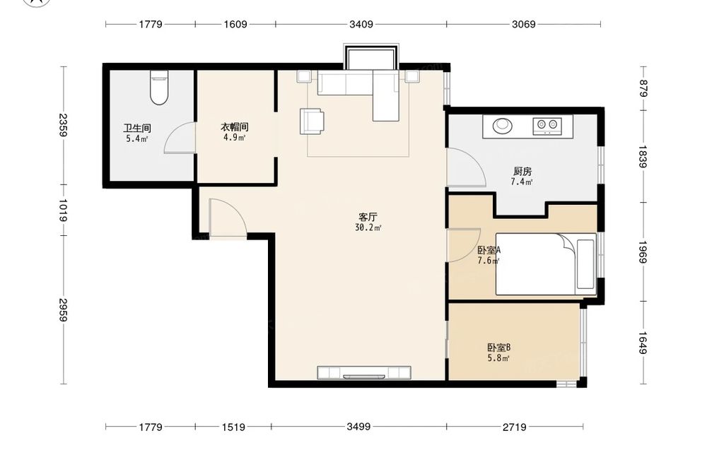 房屋结构 2室 1厅 1卫