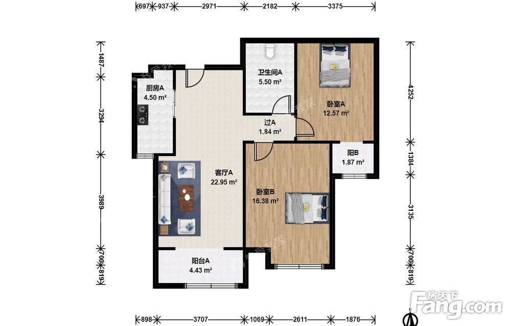华远铭悦 2室1厅 南