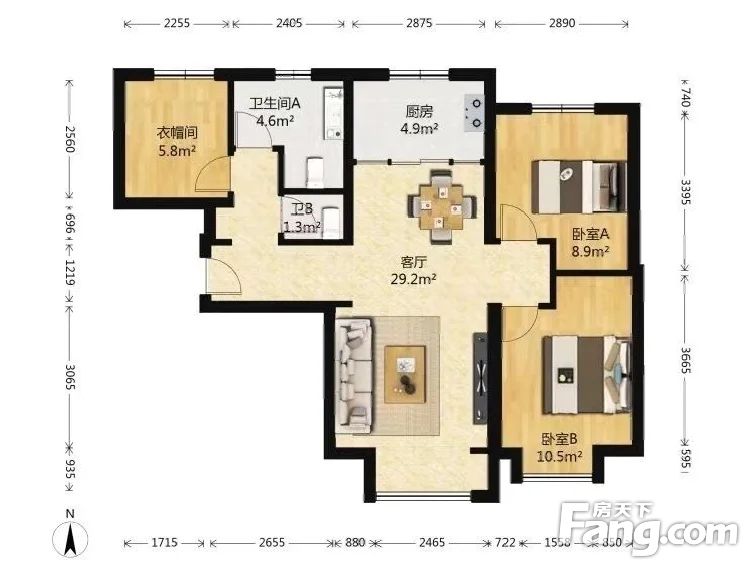 1.房子格局方正,没有浪费空间。