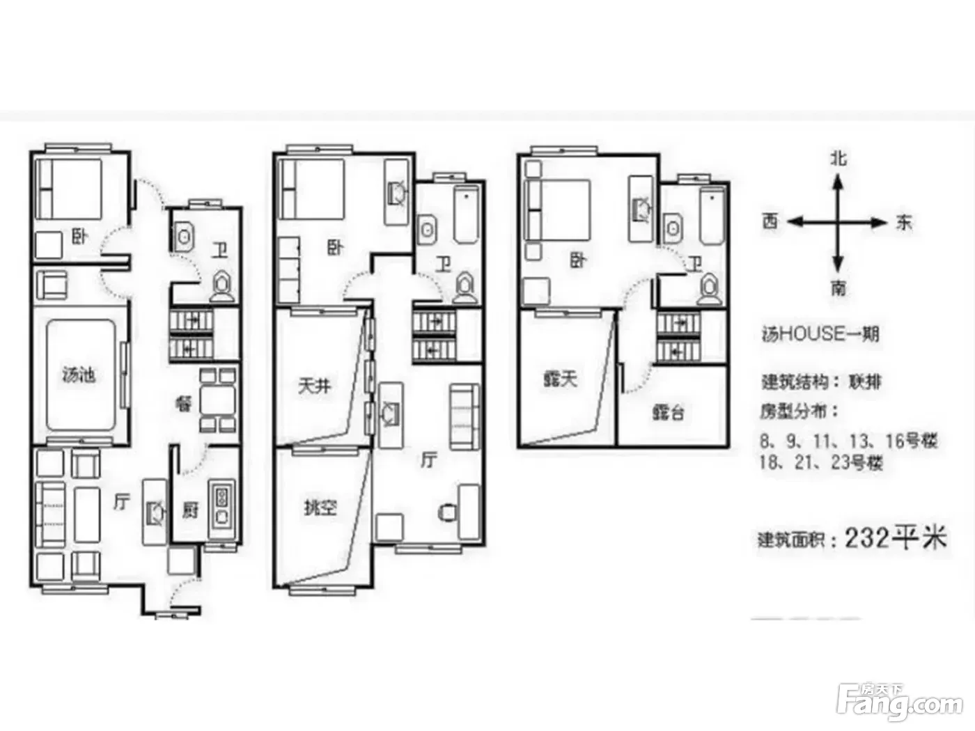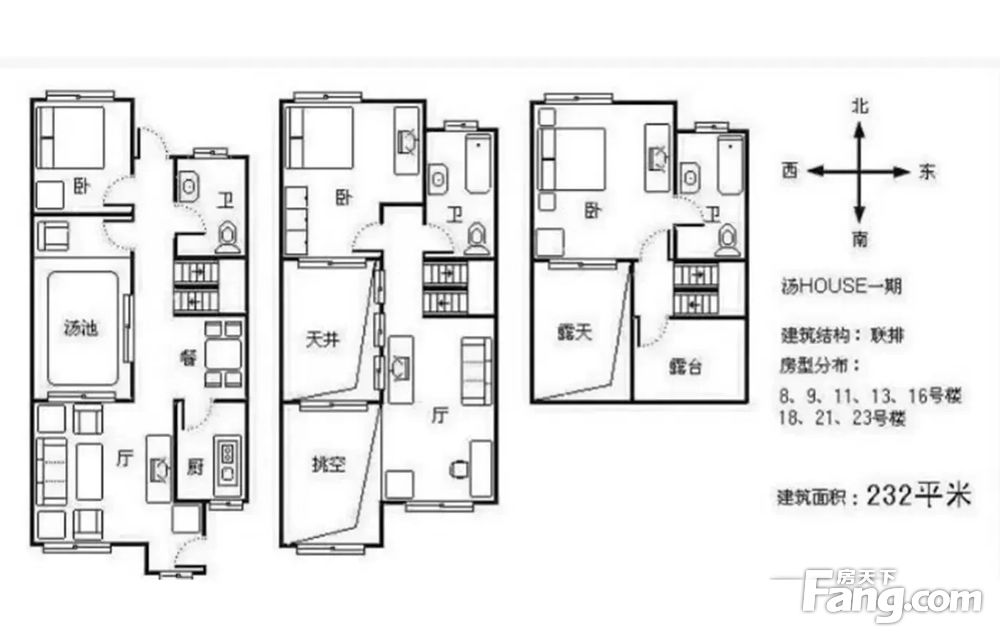 汤house联排别墅南客厅,南北通透,纯地上三层