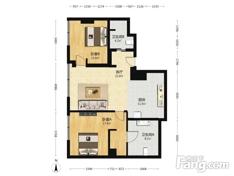 户型:2室2厅 ,朝向:西,格局方正,使用率超赞