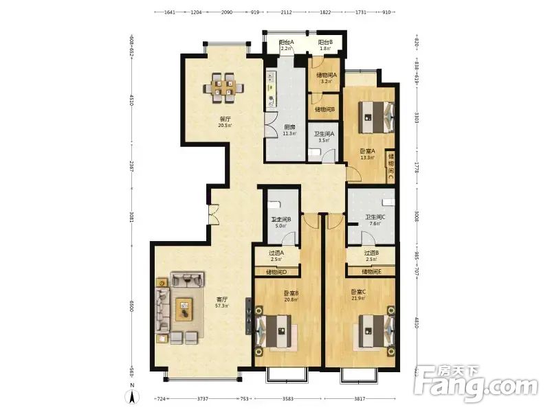 房屋拥有相对宽松的尺寸,布局通透,动静分离,设计豪华