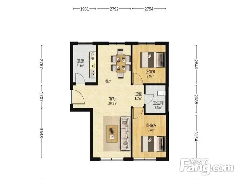 户型介绍:电梯房,板楼,没有遮挡,户型设计合理,没有浪费面积,利用率高