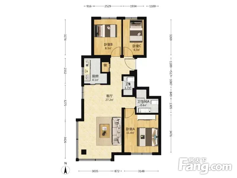 3室1厅2卫