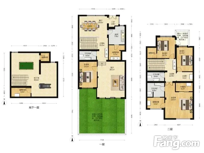 境界精装下叠别墅,南北花园,地下车位,3层中间户