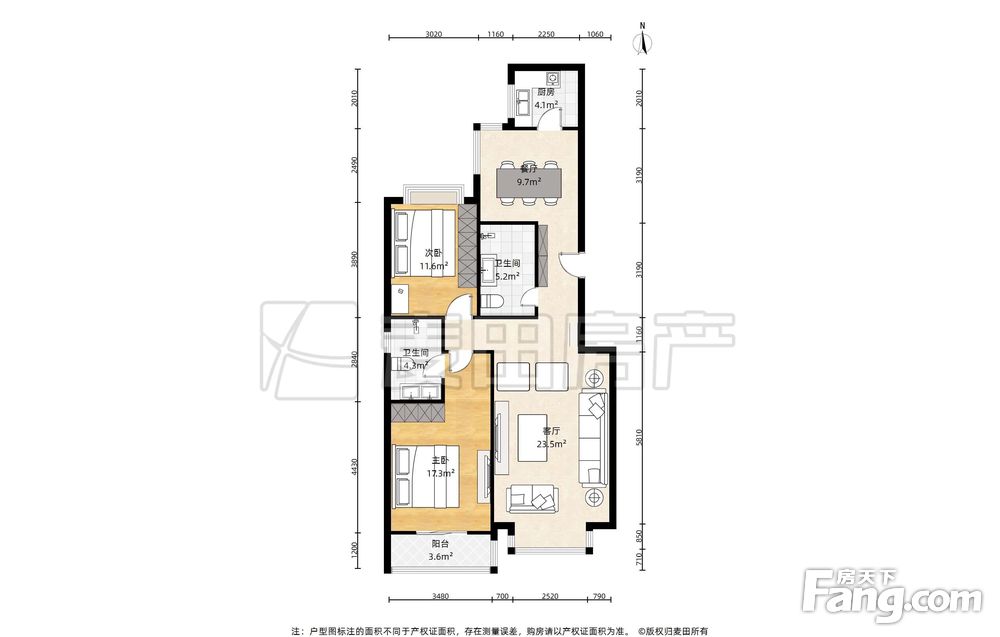 当代城市家园两居两卫,餐客厅分离的,卫生间有窗户,南北通透