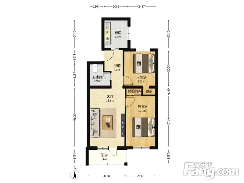 户型介绍房子中楼层,采光好无遮挡,配套齐全,主卧室朝南、客厅朝南,次卧室朝北