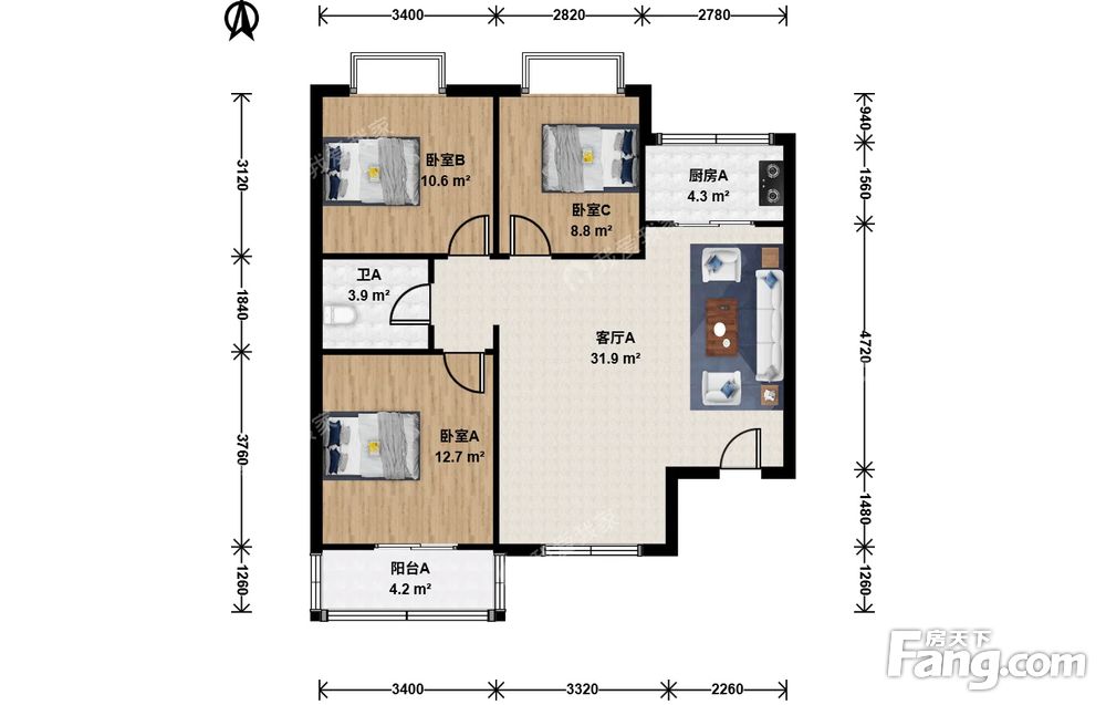 空港吉祥花园3室1厅南北