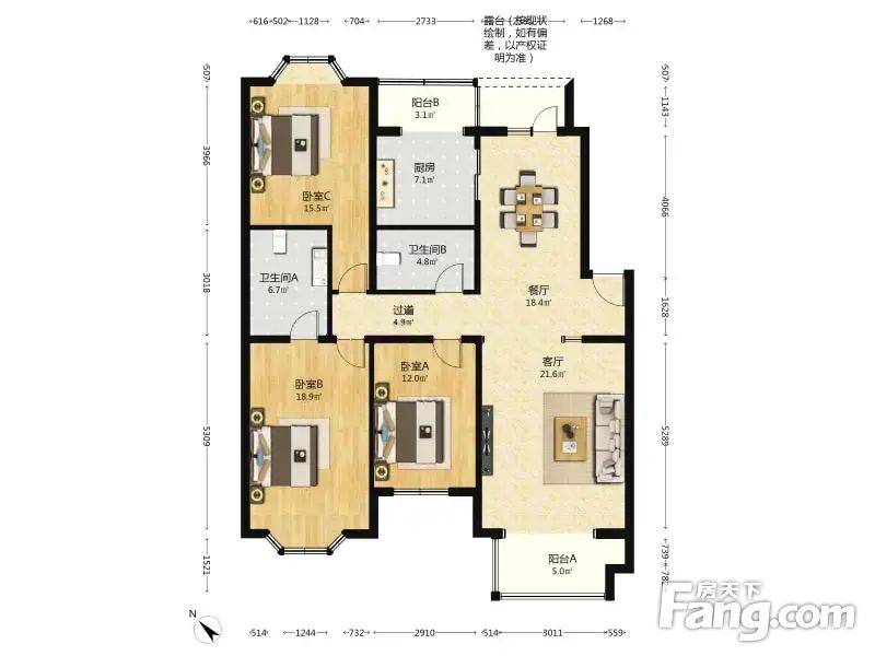 莱茵河畔 中间楼层 南北通透三居室 看房有钥匙