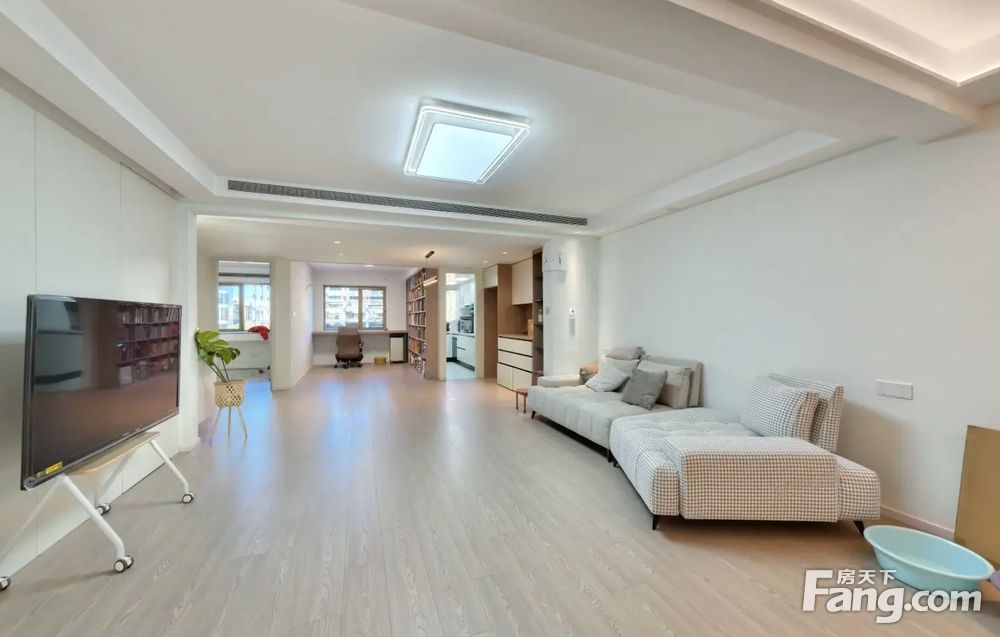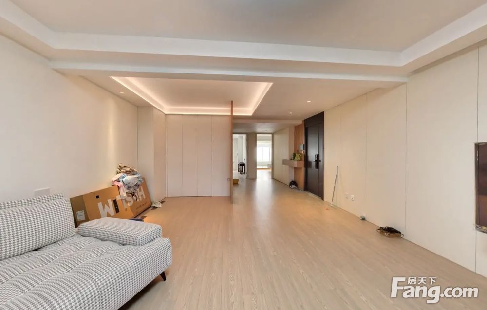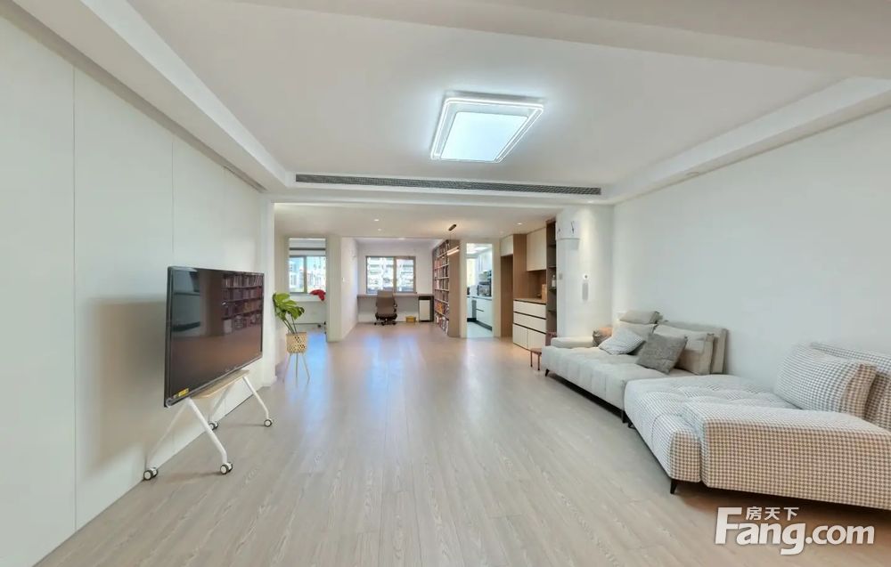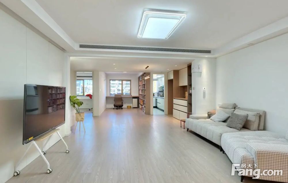 房子是南北通透的三居室格局,客厅带有8平米的大阳台,主卧室带有11平米衣帽间和8平米的卫生间;房子中间是餐厅和储物空间,设计师给房子每个空间都预留了储物的空间,厨房和次卧室朝北对小区花园;整体房子前后都没有遮挡,精心设计百万装修。