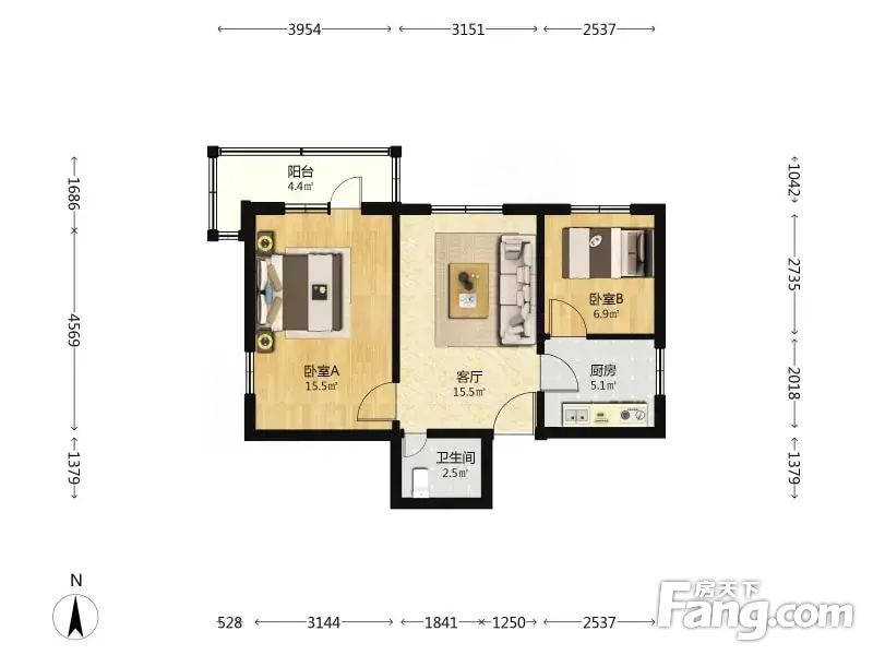 3.户型正气:南北的户型、格局周正合理、无浪费面积。