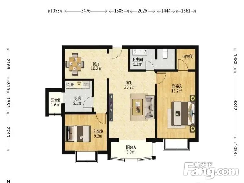 兴都苑2室1厅东南