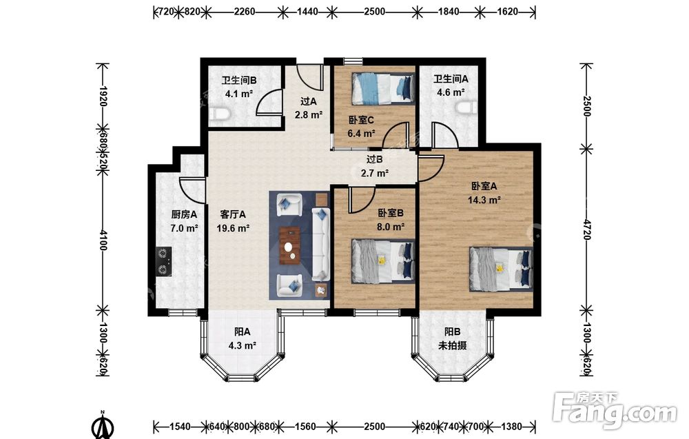 合生滨江帝景一期3室2厅南