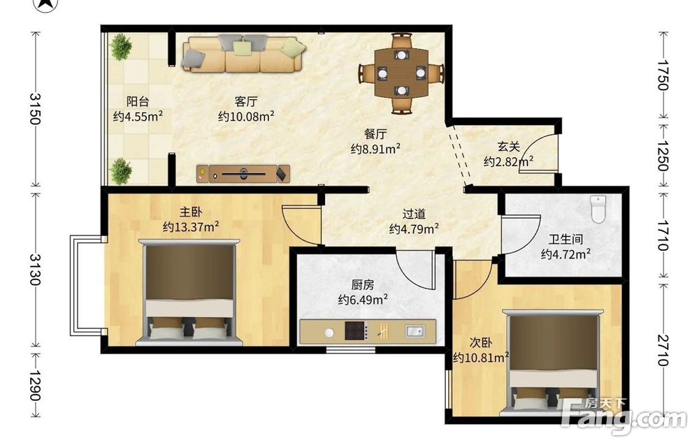 • 当前房源报价为:265.00万
