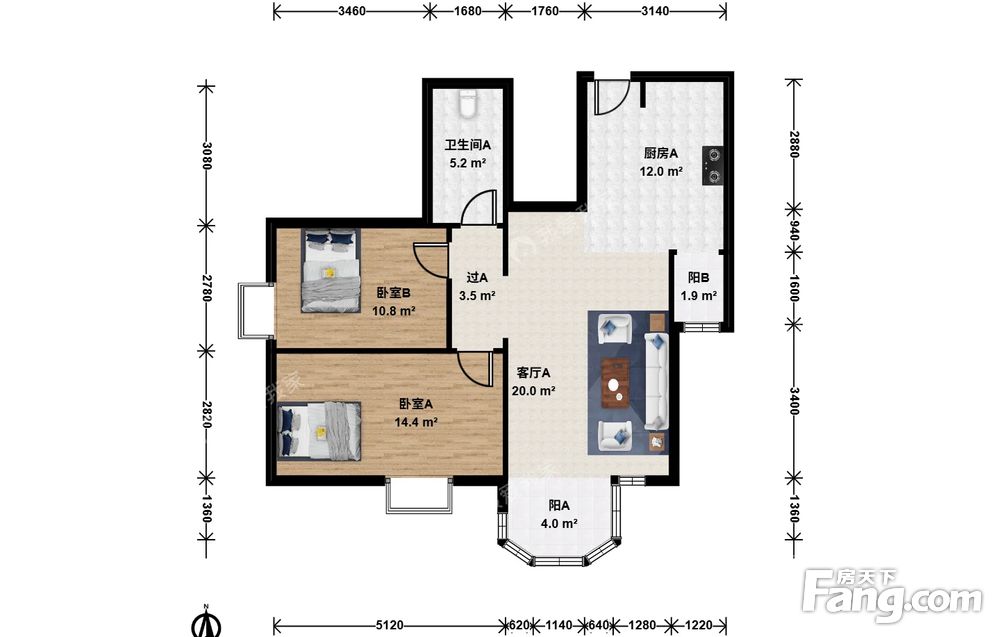 三环外精装修高楼层二居室客厅朝南