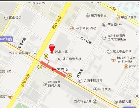 交通:1号线:太原街站,公交:115路、210路、220路、231路、264路、277路、282路医大一院站、216路、249路、255路、271路、281路、295路、324路、399路、铁西新区一线太原街中山路站